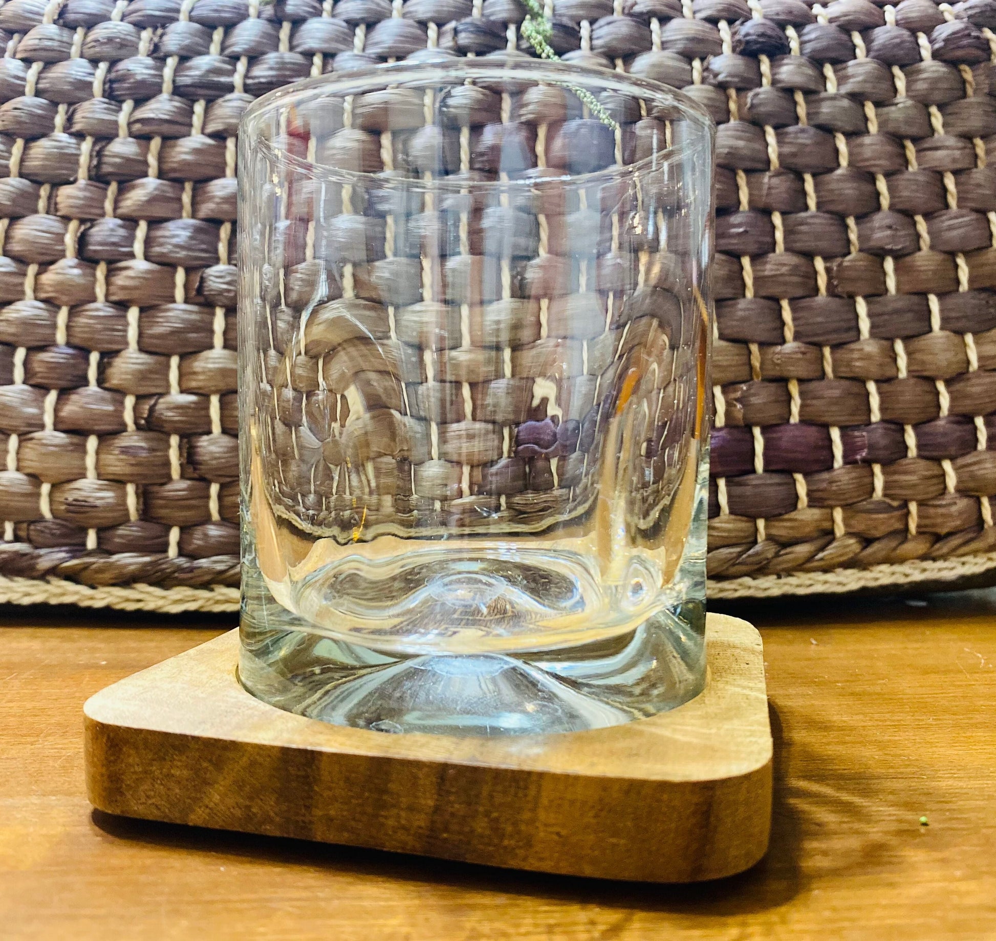 Option 2 is a stylish, contemporary addition to your barware accessories. The logo/image is laser engraved into the wood inside the area that holds a rocks glass. They will fit perfectly with your bourbon-themed room or office! Coasters have feet to avoid damage to surfaces and to prevent sliding. Each coaster measures approx. 4'x4' and has rounded corners. Clean with a damp cloth and towel dry.